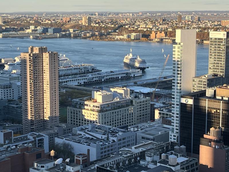 Der Tag beginnt mit einem Kreuzfahrtschiff an den Piers bei der 50st. Die Blätter fallen immer schneller, nicht nur im Central Park. ...