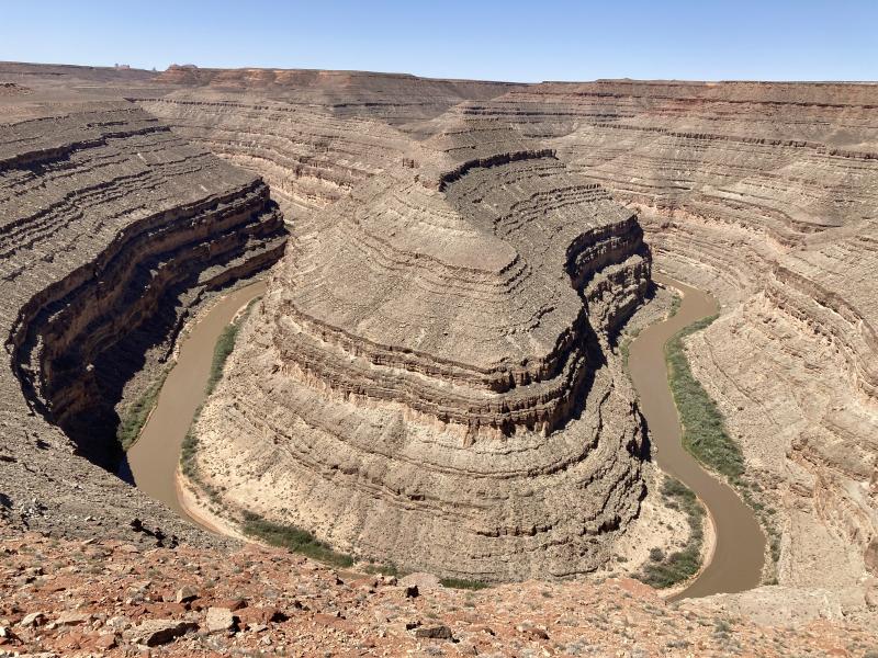 Frühstück zu sechst im MV. Danach eine Tour durch das Valley. Wir geniessen dann noch eine Stunde auf unserer Terasse. Danach geht es los,Stopp am Forrest Gump Point, dann Gooseneck SP und Valley of the Gods. Am Abend Zusammenführung der irren 8 bei Applebees in Durango. ...
